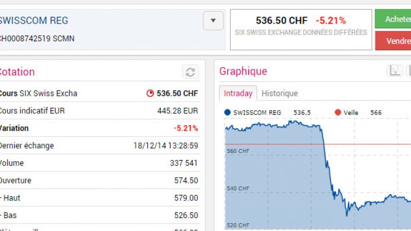 L’annonce du rachat d’Orange Suisse par Xavier Niel n’aura pas tardé à produire ses premiers effets. Et ce sont les investisseurs qui ont été les premiers à réagir, en faisant chuter lourdement l’opérateur historique Swisscom à la bourse de Zurich. A 13h45, le titre perdait 5,21 %. Les investisseurs imaginent certainement que Xavier Niel va révolutionner le secteur des Télécoms suisses comme il l’a fait en France.