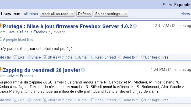 Free avait annoncé une seconde mise à jour pour la Freebox Révolution, qui aurait du être déployée vendredi 21 janvier. Visiblement, cette dernière est encore en beta test mais sa sortie semble imminente. En effet, le flux RSS du blog des développeurs de la Freebox a laissé apparaître le message d’annonce du firmware Freebox Server 1.0.2. Ce message a cependant été retiré très rapidement.
