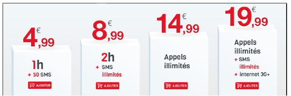 A noter que, comme les plupart des offres censées concurrencer le forfait 2€ de Free Mobile, les tarifs hors forfait sont excessivement chers. Ainsi, dans ce cas, les appels sont facturés 0,35 € / min (à la seconde), les SMS : 0,10 € / SMS et Internet : 0,10€ / Mo