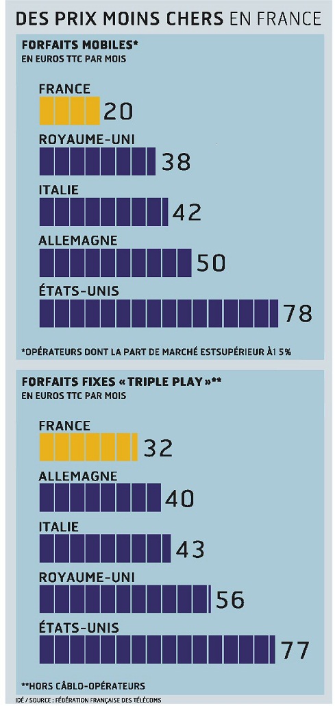 Les forfaits mobiles en France sont les moins chers du monde depuis l’arrivée de Free mobile.