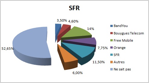 Comme pour Bouygues Télécom, les abonnés qui résilient SFR se tournent majoritairement vers Free Mobile, avec 14% des anciens abonnés SFR qui choisissent ses offres. Le plus étonnant est la deuxième place occupée par SFR. « Pour 11.50% des clients, ils retournent chez leur opérateur, en l’occurrence SFR. En effet, en général la raison est que profiter de ses points de fidélité n’est pas forcément aussi intéressant que de souscrire une ligne en tant que nouveau client. » explique edcom.fr. Viennent ensuite Orange, avec 7,75% des anciens abonnés SFR et Bouygues Télécom avec 4,60%.