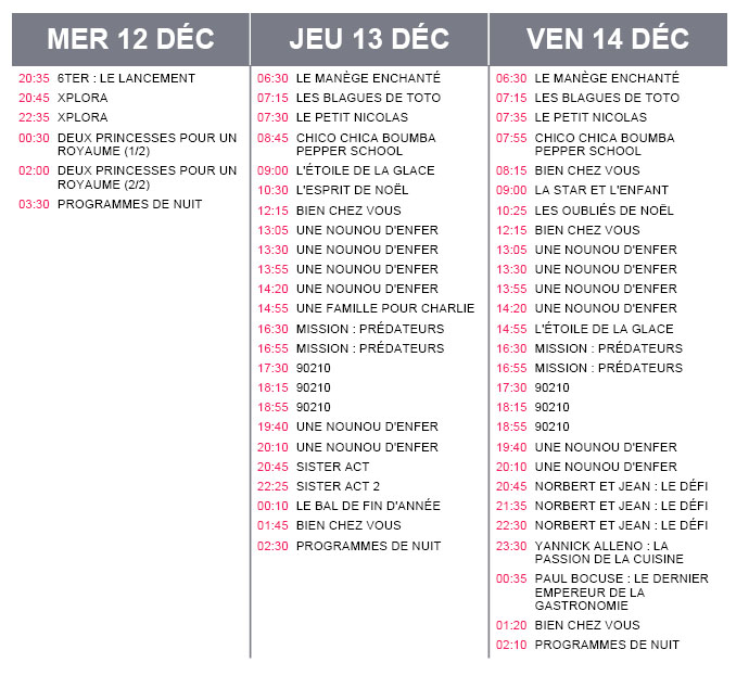 Comme on peut le constater, la grille est composée de série, magazine, films, dessins animés et documentaires. Peu de surprise et beaucoup de rediffusion, mais on trouve tout de même quelques nouveauté comme par exemple