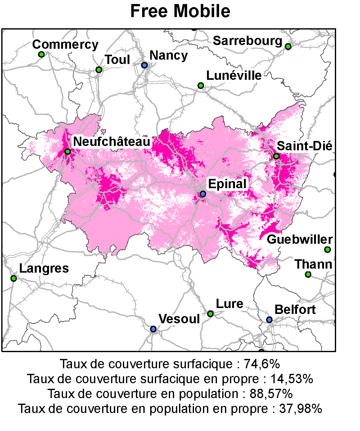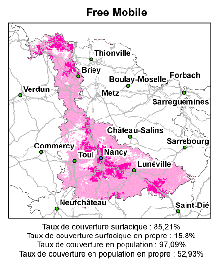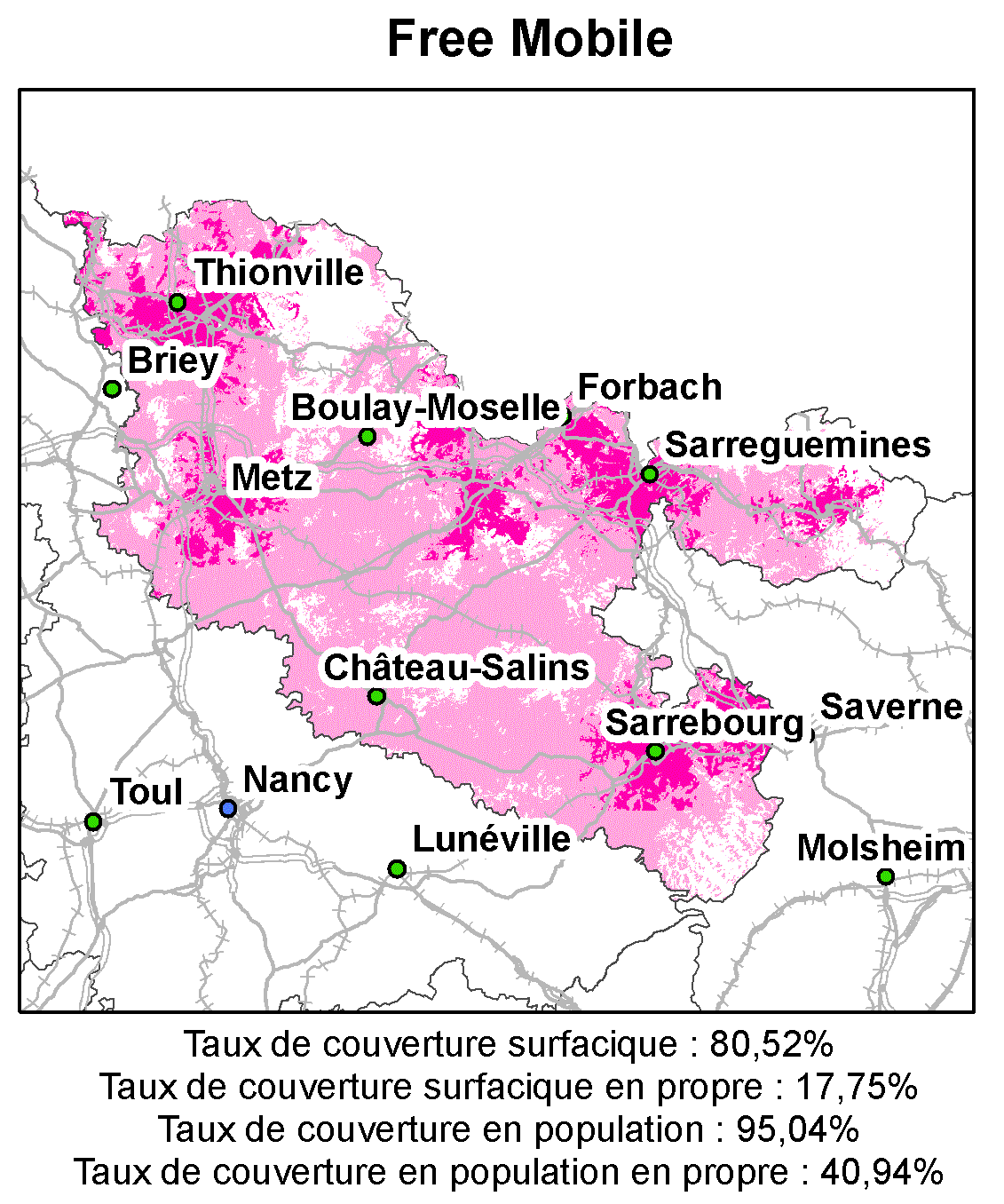 Lorraine : Free mobile couvre environ 15% du territoire et 40 % de la population.