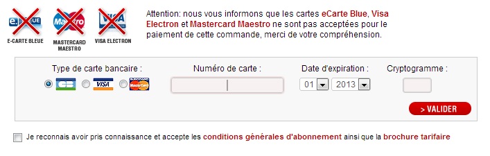 Paiement en ligne Free Mobile : les cartes bleues “Electron” et “Maestro” ne sont plus acceptées.