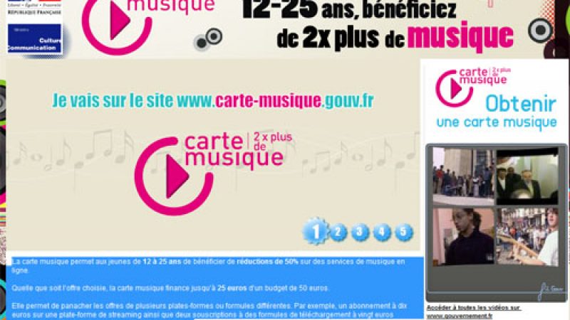 Ainsi que nous vous l’annoncions, c’est donc aujourd’hui qu’est lancée la carte musique. Celle-ci permet aux jeunes de 12 à 25 ans de bénéficier de réductions de 50% sur des services de musique en ligne.