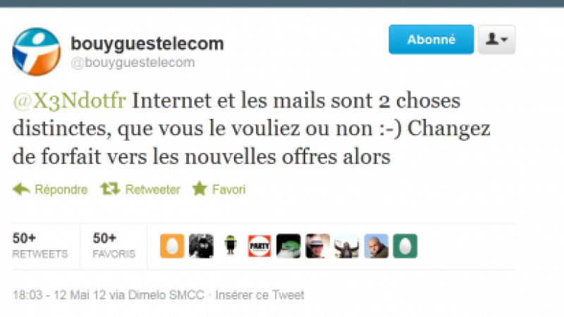 « Internet et les mails sont 2 choses distinctes, que vous le vouliez ou non Changez de forfait vers les nouvelles offres alors », voici les quelques lignes qui poussent Bouygues Télécom à éteindre l’incendie.