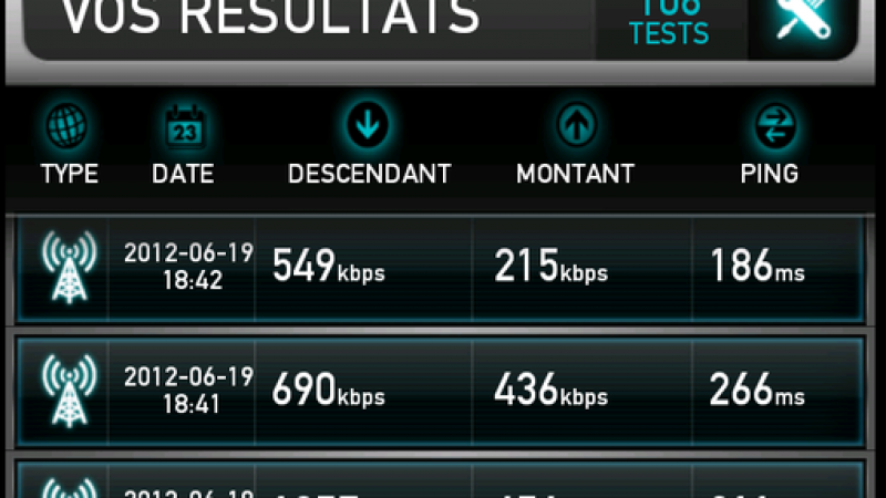 D’après de nombreuses mesures effectuées dans toute la ville sur des antennes Free et Orange, entre 8h et 00h, il est désormais difficile de dépasser la barre des 1 200 kpbs tandis que le débit moyen se situe autour de 1000 kpbs. Pour s’assurer qu’il ne s’agissait pas d’un problème isolé, nous avons utilisé plusieurs smartphones différents (Nokia 900, Galaxy S III, iPhone 4S), ainsi que plusieurs lignes Free. Le constat est toujours le même : les débits sont très bas. La nuit, la situation s’améliore avec des débits situés autour de 2000 kpbs, voir plus.