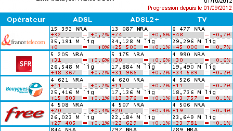 Comme chaque mois, nos confrères de Degroupnews publient le bilan du dégroupage chez les différents opérateurs. Et ce mois de septembre aura été très calme, chez Free mais également chez les autres opérateurs. Ainsi, Orange n’a amené l’ADSL que dans 32 nouveaux NRA, SFR a dégroupé 31 NRA, Free 20 nouveaux NRA et Bouygues Télécom, qui ferme la marche, seulement 11 NRA.