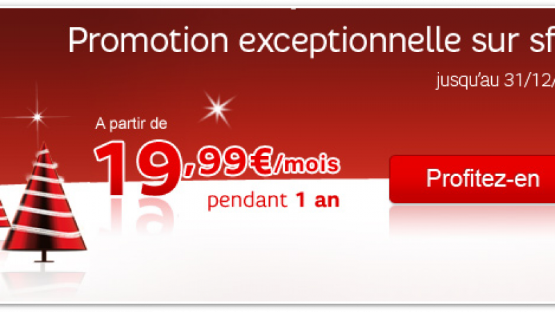 Après s’être illustré récemment dans le mobile avec « Joe Mobile » ou la « Série Red », SFR lance les festivités sur ses forfaits ADSL et Fibre. SFR propose une réduction de 10€ par mois jusqu’au 31 décembre 2012. Pour toute souscription avant la fin de l’année, les nouveaux abonnés à la Box de SFR pourront bénéficier d’une réduction de 10 euros par mois pendant 1 an (soit 120€ d’économie).