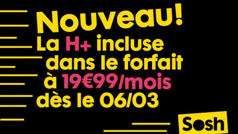 Pour profiter des avantages de la H+, les abonnés Sosh doivent être dans une zone de couverture H+ (Orange couvre 77% de la population en H+) et disposer d’un smartphone compatible. Les clients du forfait à 19,99€/mois n’ont aucune action à effectuer, l’accès au réseau H+ se fera automatiquement dans le 6 mars. Le passage en H+ du forfait Sosh mobile + Livebox à 44,99€/mois se fera le 3 avril précise l’opérateur low-cost du groupe Orange.