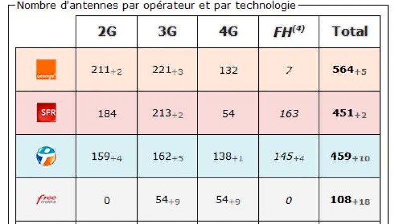 4) FH (faisceau hertzien) : Système de transmission entre les antennes relais. N’est jamais directement capté par un mobile. (chiffre non comptabilisé dans le total des antennes).