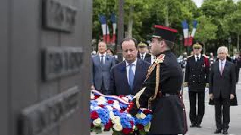Le président accompagné de Manuel Valls, de Jean-Yves Le Drian, et de Kader Arif, a rendu hommage à la victoire des alliés le 8 mai 1945.