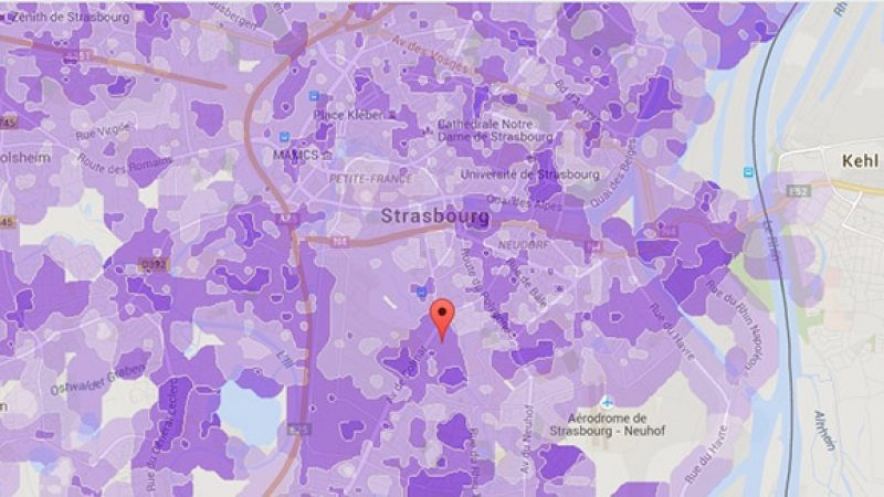 Sur la ville de Strasbourg Bouygues possède 58 antennes, du côté de Free 40 antennes, ex æquo avec SFR et 70 pour Orange qui prend la tête du nombre d’antennes installées.