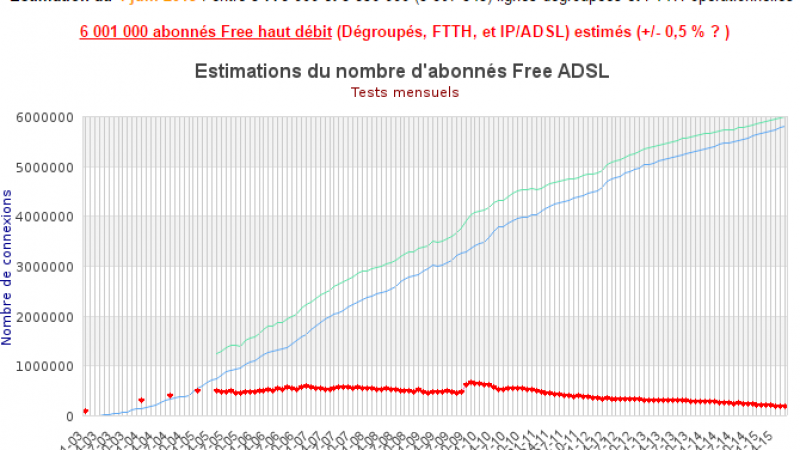 Selon les estimations Francois04, Free a franchi la barre symbolique des 6 millions d’abonnés ADSL et FTTH