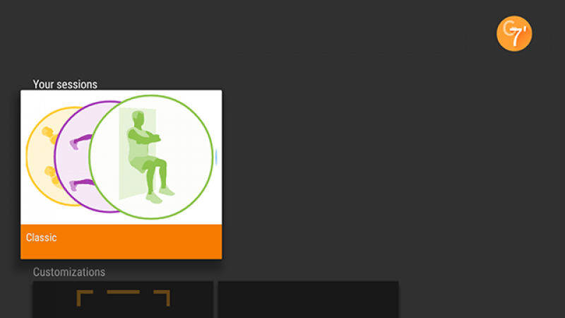 Une session de base composée de 13 exercices vous est proposée par l’application. Chaque session se compose d’une suite d’exercices de 30 secondes suivi d’une pause de 10 secondes. Les exercices vous sont présentés par une simple image qui permet de comprendre rapidement ce qu’il faut faire.