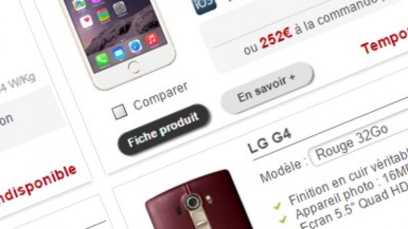 Même constat pour 3 modèles Samsung. Les Galaxy S6 Edge (32 Go Noir ou Blanc), Galaxy Note 4 (32 Go Blanc ou Noir) et Galaxy Trend 2 Lite (4 Go Noir ou Blanc) sont temporairement indisponibles.
