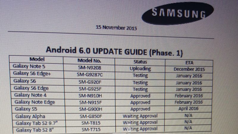 Android 6.0 Marshmallow : un planning des mises à jour Samsung en fuite sur la toile