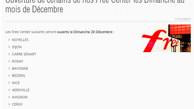 Free communique officiellement sur l’ouverture des Free Center les dimanches au mois de décembre