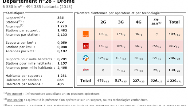 Univers Freebox vous propose, via le site Couverture Mobile, un tableau comparatif du nombre d’antennes déployées dans la Drôme, par les différents opérateurs.