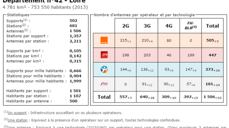 Univers Freebox vous propose, via le site Couverture Mobile, un tableau comparatif du nombre d’antennes déployées dans la Loire, par les différents opérateurs.