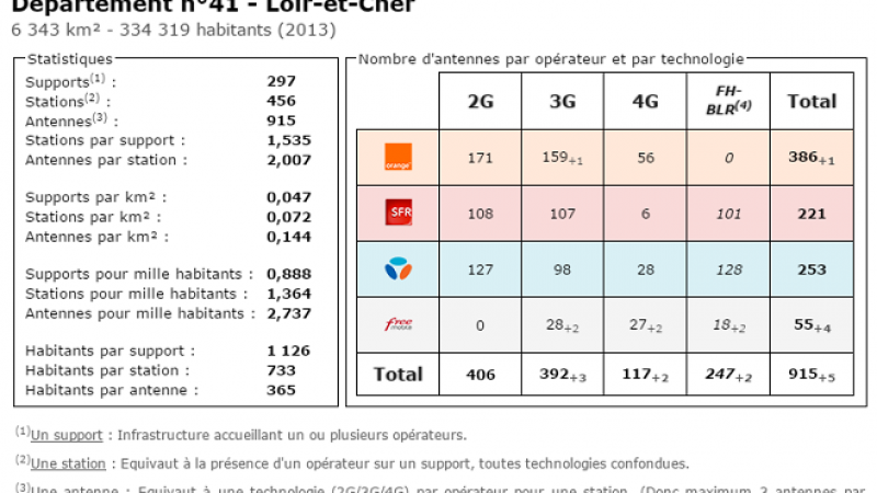 Univers Freebox vous propose, via le site Couverture Mobile, un tableau comparatif du nombre d’antennes déployées dans le Loir-et-Cher, par les différents opérateurs.