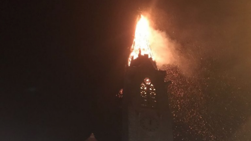 En images : le clocher d’une église et des antennes-relais flambant neuves d’Orange et SFR partent en fumée