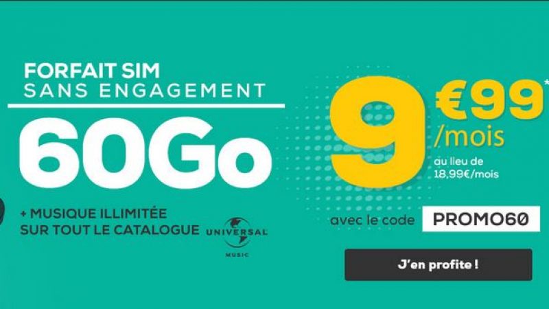 Jusqu’au 26 mai prochain, La Poste Mobile lance une vente flash et propose son forfait à 60Go pour 9.99€ au lieu de 18.99€ grâce à un code promo, sans engagement ni condition de durée.