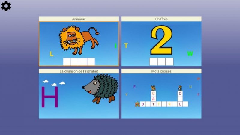Parlons maintenant des quatre activités proposées : Animaux, Chiffres, La chanson de l’alphabet et Mots croisés.