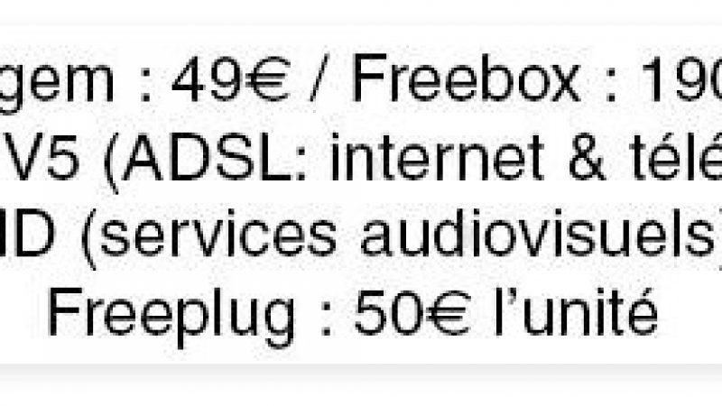 Le prix des autres équipements ne changent pas (Boitier HD 290€, Freebox ADSL 150€….).