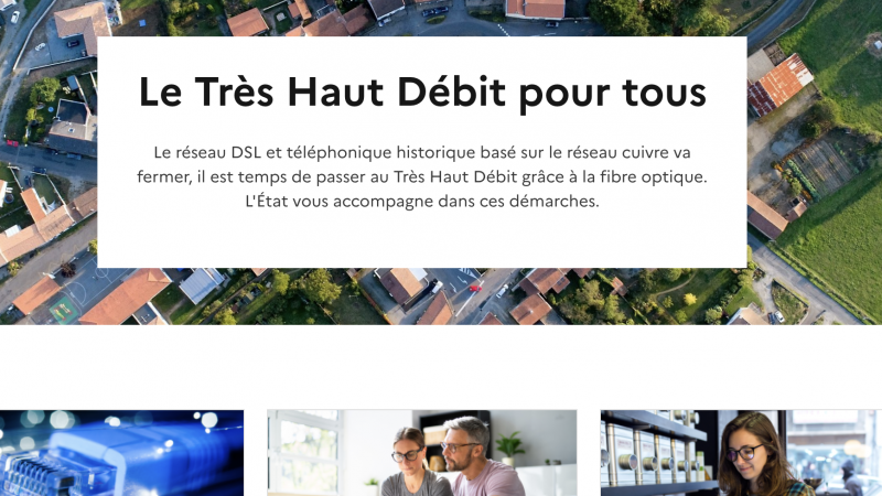 Rassurer les Français sur une étape technologique importante qui les attend s’ils n’ont pas encore migré vers la fibre. Dans un contexte où les services téléphoniques historiques et internet DSL basés sur le réseau cuivre vont progressivement s’arrêter jusqu’en 2030, l’Etat lance aujourd’hui un site internet « treshautdebit.gouv.fr » qui s’adresse à tous les publics, particuliers, élus et entreprises pour les informer sur les démarches à mettre en œuvre dans le cadre de la transition vers la fibre.