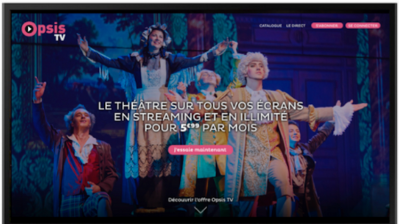 Surnommée le « Netflix du Théâtre », lauréat 2017 du prix Audiens de l’initiative numérique, Opsis TV est une plateforme sur abonnement qui permet d’accéder à des centaines de programmes au tarif de 5,99 euros/mois pour le grand public (Théâtre Classique, Contemporain, Jeunesse, Musical, Patrimonial…), ainsi qu’à de nombreuses retransmissions en direct de spectacles.