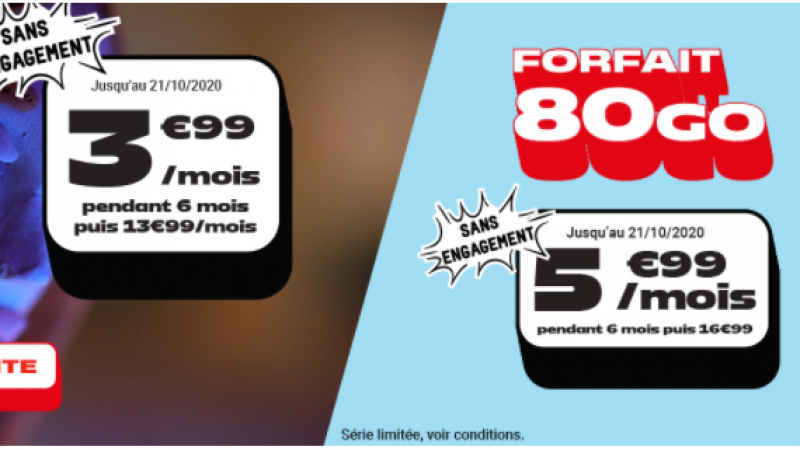 NRJ Mobile : deux forfaits 40 Go et 80 Go sans engagement en promotion à moins de 6 euros