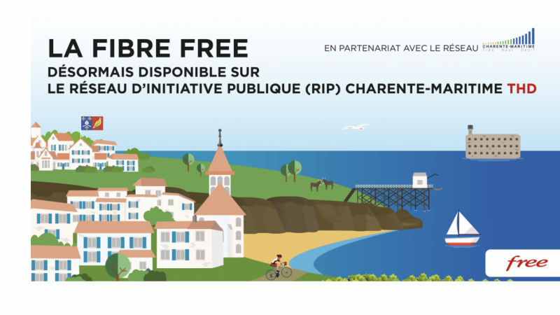 Après Somme Numérique en juillet et Orne Département THD la semaine dernière, c’est au tour du RIP Charente-Maritime THD d’accueillir officiellement les offres FTTH de Free. Si de premières Freebox sont éligibles depuis le 1er juillet, Free annonce ce matin une disponibilité pour plus de 27 000 logements répartis sur une cinquantaine de communes dont Surgères, Saint-Pierre-d’Oléron, SaintPalais-sur-Mer, Saint-Jean-d’Angély, Dolus-d’Oléron, Loix, Pons, Saint-Georges-d’Oléron, Marans, Arvert, Saint-Georges-du-Bois, Aigrefeuille-d’Aunis ou Les Mathes.