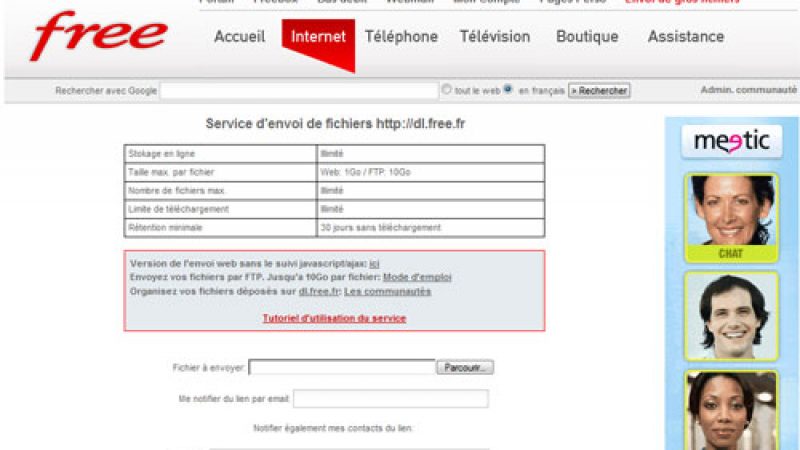 Après une période d’interruption pour maintenance de quelques heures, le service d’échange de fichiers de Free arbore désormais les couleurs du nouveau site de Free.