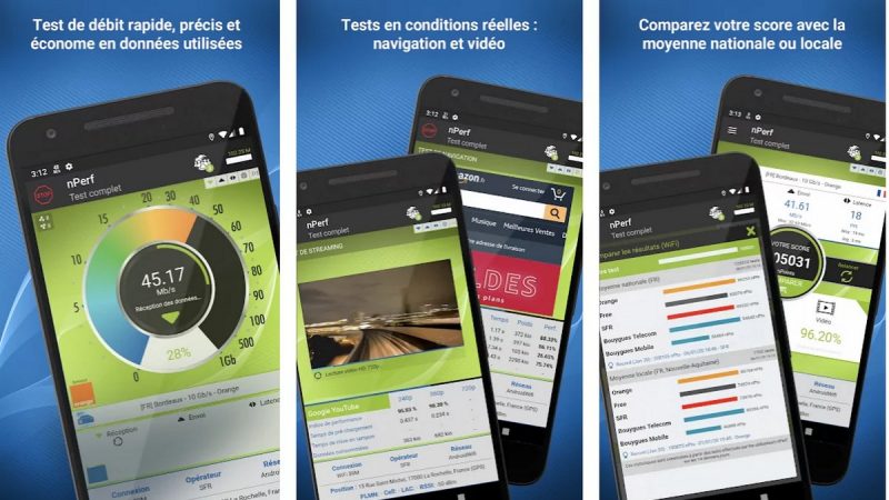 Disponible gratuitement sur Android et iOS, l’application mobile nPerf permet pour rappel d’évaluer la qualité de sa connexion 3G, 4G, 5G et Wi-Fi, en effectuant un test de débit descendant et montant, mais aussi un test de navigation sur plusieurs sites Internet et de streaming vidéo avec différentes qualités d’affichage. Un nombre de points est par la suite révélé lequel reflète la qualité globale de la connexion. Une carte de couverture et débits est également disponible avec un filtrage par opérateur (Orange, Free Mobile sans itinérance, SFR et Bouygues Telecom).