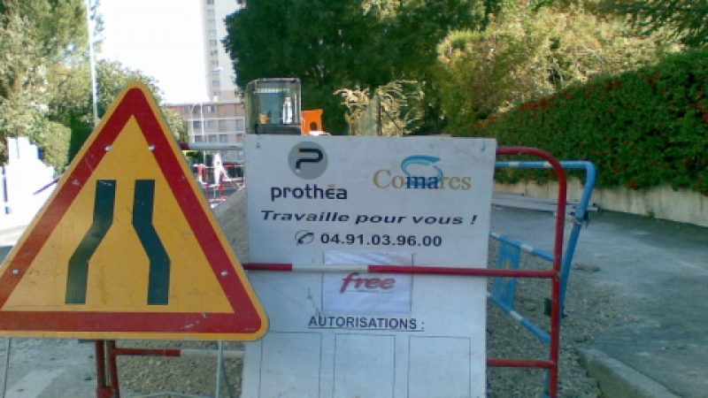 Les Marseillais sont à l’honneur ! Fafamonteko, un Freenaute, lecteur d’Univers Freebox, nous a envoyé quelques clichés des travaux de fibre optique, réalisés pour Free Infrastructure ! La fibre est déposée par Prothéa / Comares (sociétés mandatées par ADV Réseaux).