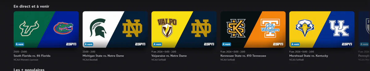 Parmi les contenus attendus dans les prochains mois, on peut compter notamment la NBA dès la saison 2026-2027, la NHL, les compétitions universitaires de la NCAA, dont la célèbre March Madness, du football universitaire et des bowls games, des événements plus atypiques comme la Little League World Series
