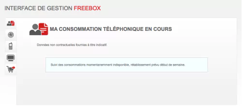 Vous avez pu remarquer que depuis la fin de l’année 2009, début de l’année 2010, le suivi de la consommation téléphonique en cours n’est plus disponible. En allant sur ce suivi, il nous indiquait que celui-ci reviendra en début de semaine prochaine.