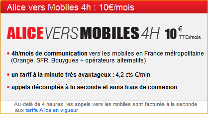Alice propose un forfait 4h mobiles pour 10 euros, et chez Free ?