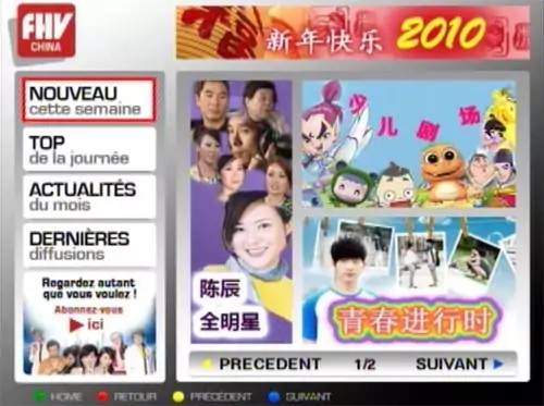 FHV China est une chaîne à l’unité disponible pour 4,99 euros par mois avec un accès illimité aux différentes vidéos, dont une partie est renouvelée chaque semaine. Attention cependant, les programmes proposés ne sont pas sous-titrés, cette chaîne ne s’adresse donc qu’à ceux qui parlent la langue.