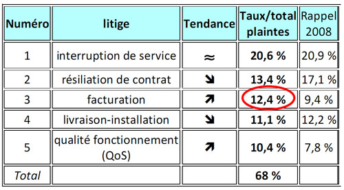 En valeur absolue, les nombres de plaintes concernant les FAI est très nettementt en baisse passant de 65,3% en 2007 à 54,3 en 2009. L’année dernière, le nombre de plaintes concernant les FAI était ainsi de 3074. Dans ce contexte, le plaintes concernant Free représente 40% du volume total, en légère hausse par rapport l’année précédente. Ainsi que l’indique l’AFFUT, si le nombre de plaintes concernant Free a bien baissé, dans une tendance générale à la baisse, il a moins baissé que pour SFR notamment.