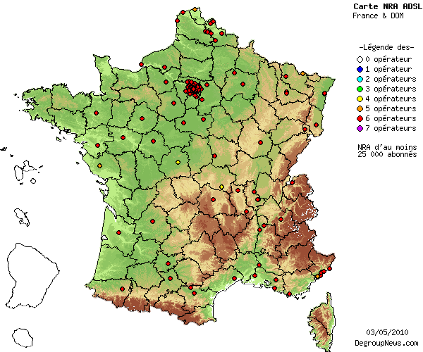 Au 30 avril 2010, la France compte 4140 NRA dégroupés commercialement par au moins un opérateur soit : un tiers des centraux téléphoniques équipés de DSLAM d’un opérateur concurrent à Orange. C’est ce que nous apprend Ariase.