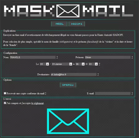 Clin d’œil: Envoyez des faux mails d’avertissement de l’Hadopi