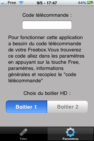 Nous vous avions présentés il y a quelques jours, l’application Freemote permettant de contrôler votre freebox via une application sur l’iPhone. Celle-ci était très aboutie et payante, mais nous ne savons pas si une version Lite sortira ( gratuite ou moins chers ). Pour combler ce trou, une version très simple et gratuite a été développé par rOro. Il est possible de contrôle deux freebox si vous avez souscrit au multiTV en indiquant simplement votre code API de votre freebox.