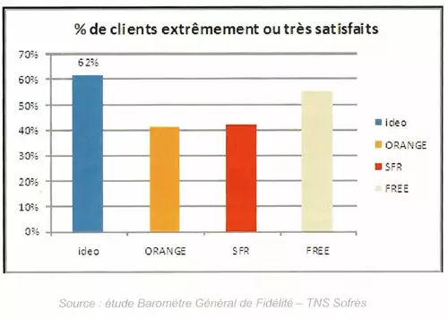 Lors de la conférence de presse de Bouygues Télécom le 18 mai dernier, un sondage commandé par l’opérateur et réalisé par TNS SOFRES, a été présenté. Celui-ci présente le résultat des clients extrêmement satisfaits ou très satisfaits de leur fournisseur d’accès à Internet.