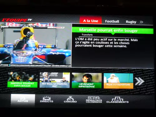 La chaîne d’information sportive en continu, l’Equipe TV, qui n’est plus disponible sur Freebox Tv depuis quelques années, vient de lancer un service interactif sur la NeufBox. Accessible depuis le canal de la chaîne, celui-ci propose des informations sportives dans différentes disciplines.