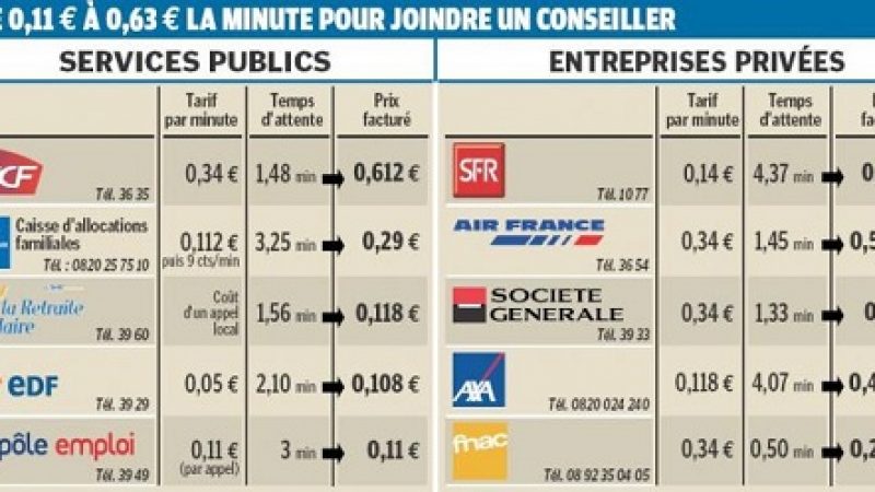 Enfin, si l’usager appelle depuis son portable ou depuis une ligne fixe, les tarifs peuvent varier. Selon le test effectué par le quotidien depuis une ligne fixe, l’appel à la Caisse d’allocation familiales coûte environ 0, 29€ la minute et 11 centimes d’euros pour un appel au Pôle Emploi.