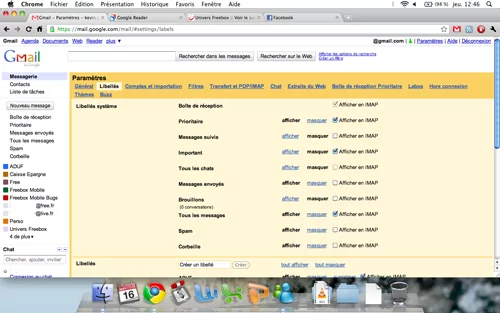 Pour afficher les Email dirigés dans la catégorie Spam, il suffit de se rendre dans les "paramètres" puis "libéllés" afin de choisir l’affichage de la catégorie "spam" dans la colonne de lecture de gauche.