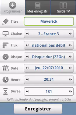 Freebox recorder, l’application Android qui permet de programmer à distance le magnétoscope numérique vient d’être sélectionnée parmi les dix finalistes du concours d’application Android organisée par LG .
