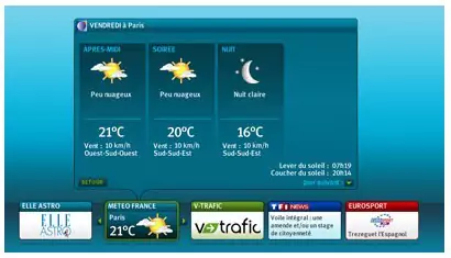 Nos confrères de Bbox News se sont procuré les premières captures des widget qui seront lancés le mois prochain sur la Bbox. 7 Widgets sont disponibles : Météo, TF1, Bourse, V-Trafic, Eurosport, Elle-Astro et Closer.